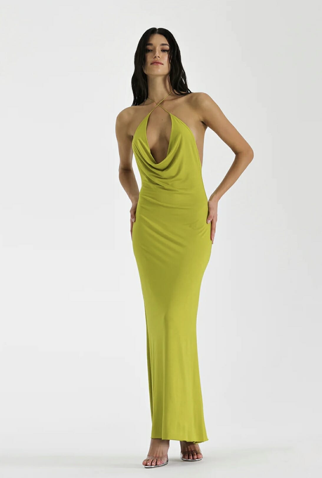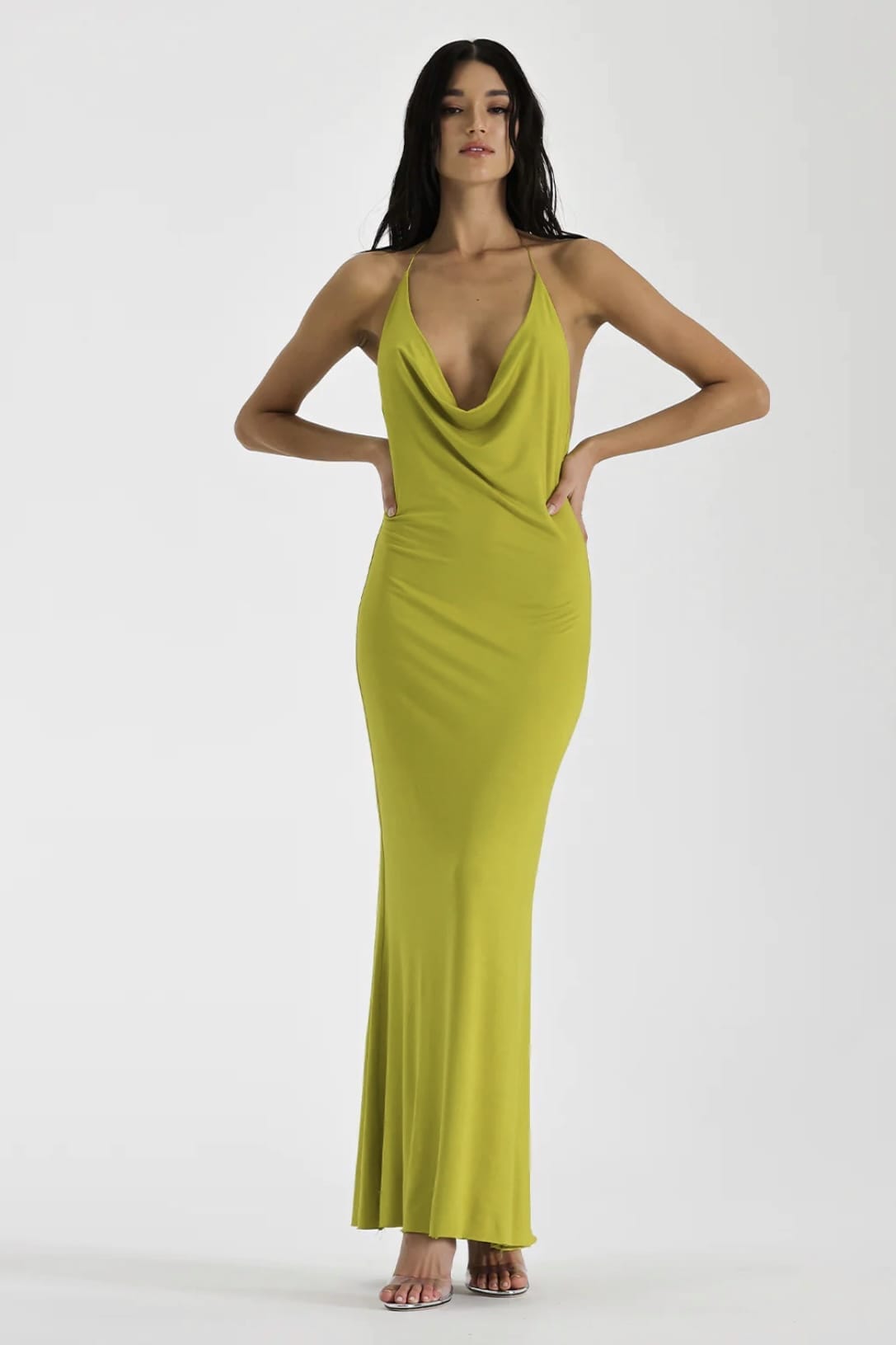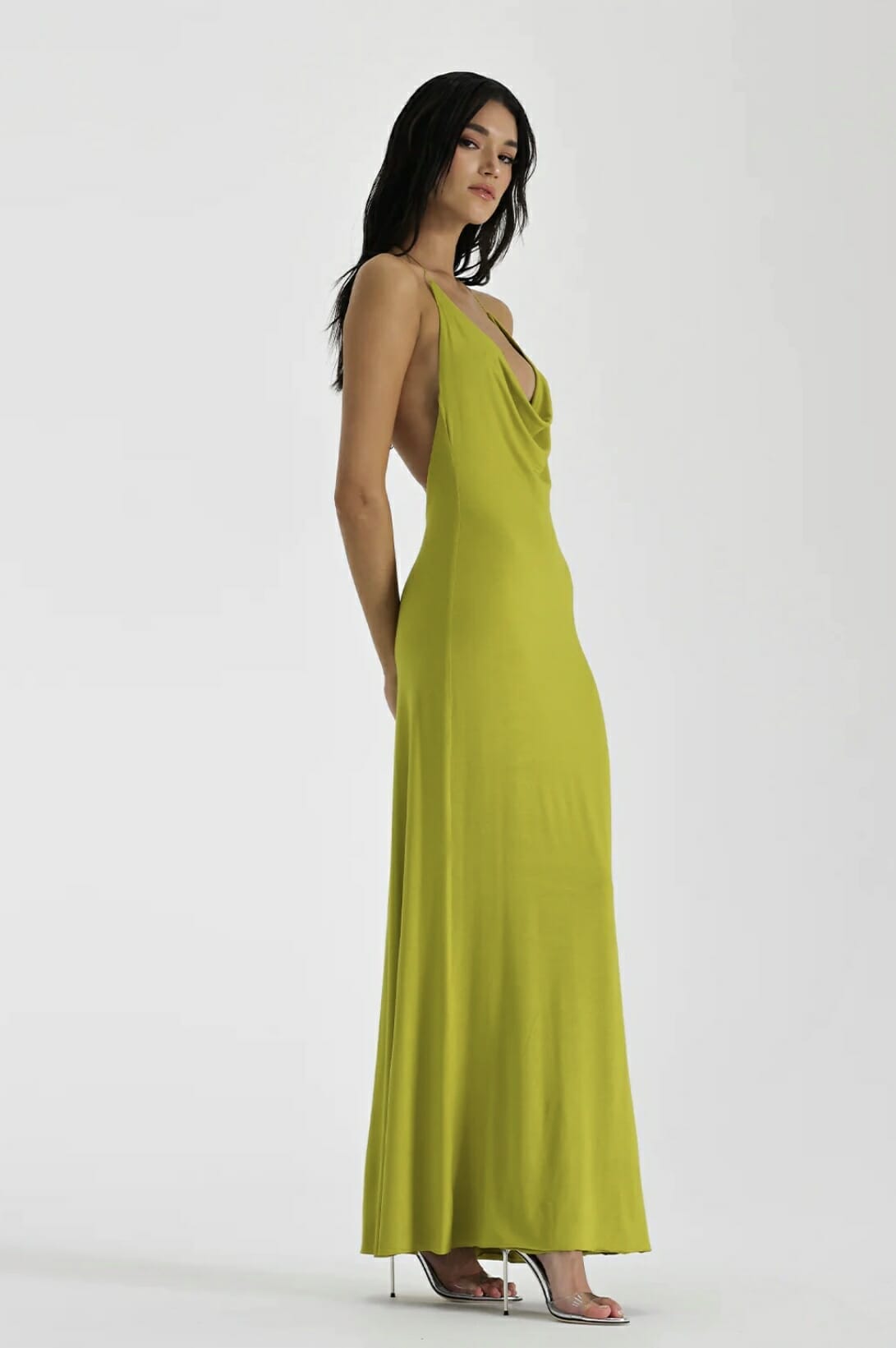 Description: The Sadie Dress features our soft-stretch bamboo fabric to effortlessly drape over the body. Signature cowl neck and cord tie fastening falls into a low back for minimalistic, yet sensual aesthetic.